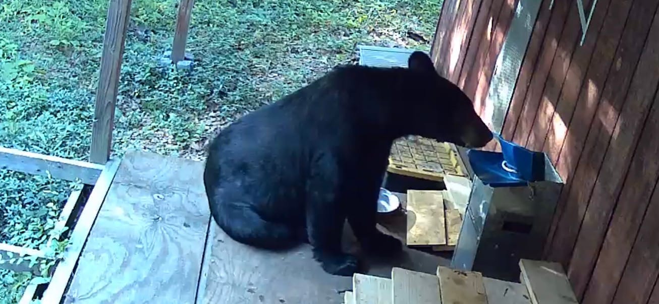 The Offspring concert was a bummer. They had four different small groups playing at the beginning for two hours, and as people with no US background, we had no idea who they were, so it was pretty boring. One of us was still reading thermodynamics, I was watching farm animals on CCTV cameras, and only one person was watching the concert! As soon as Offspring were supposed to start playing, thunderstorms began and the concert was canceled. And at that very moment, I saw a huge brown bear chilling on our porch, finishing cat food just a few feet from the unfinished chicken coop. I was horrified but also excited — way more excited than was logically acceptable for the situation.