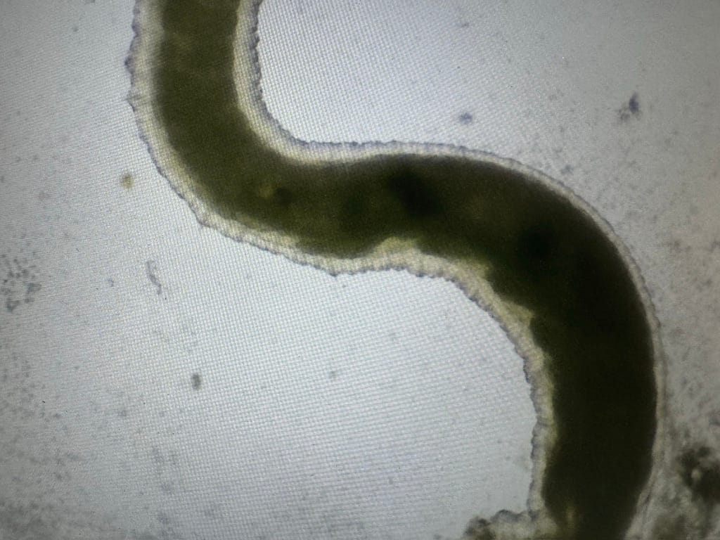 For the fourth time in a row, I used the microscope and lab tests to identify what always looked like worms or parasites — and it wasn’t. I am against anti-worming medication for animals (for humans too) and against antibiotics if it’s done without tests. I am more afraid of superbugs than worms, honestly. People don’t understand that someday we will desperately need working antibiotics… and we might not have any. Anyway… this time it was on the leaves again, and again: not parasites. At least not animal or human parasites. Not coccidiosis.