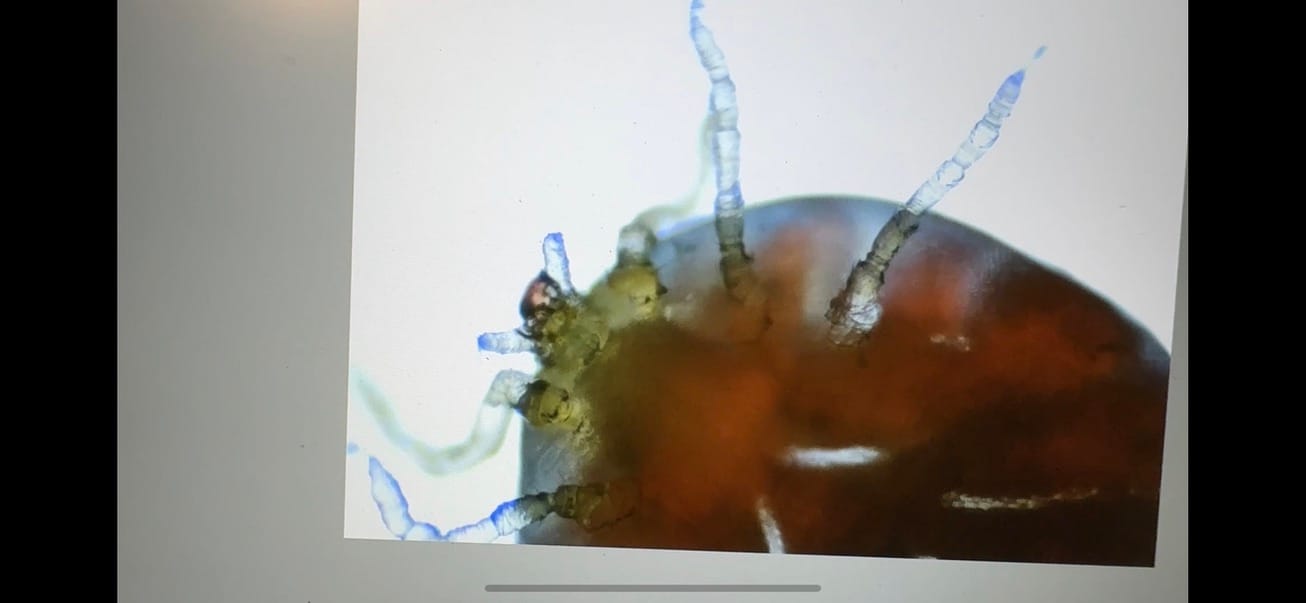 The microscope saved us a lot of nerves again, showing that the tick that bit one of us was, in fact, a nymph and not dangerous.