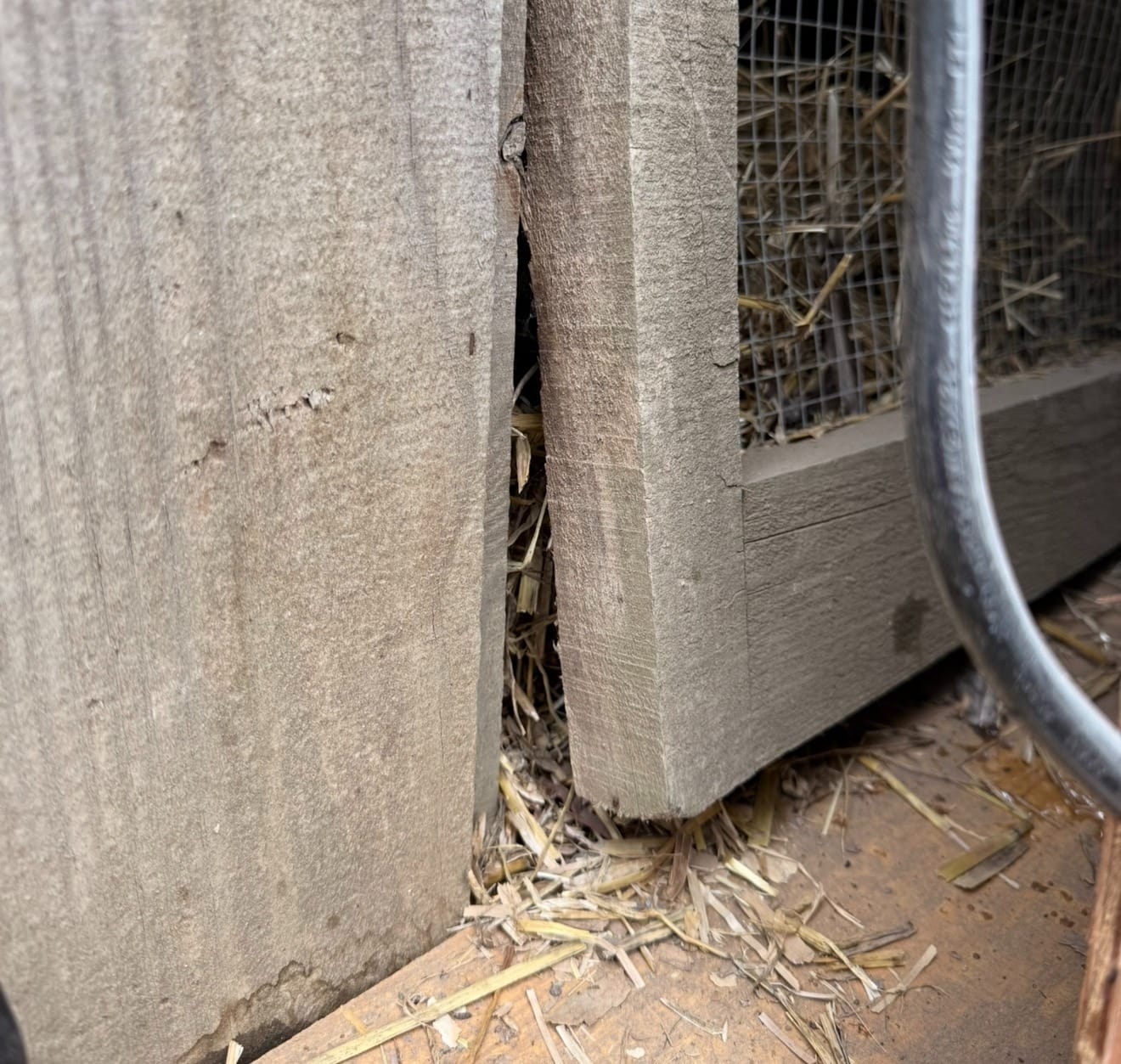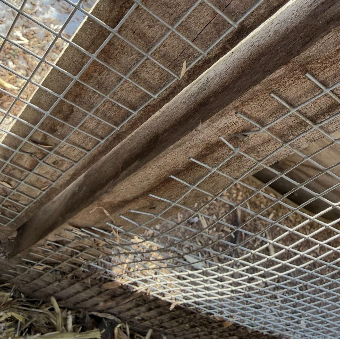 - Put another (second) mesh outside (safety and security) (important! Because it’s already pushed inside in several places by various predators): https://a.co/d/03lwWXCj